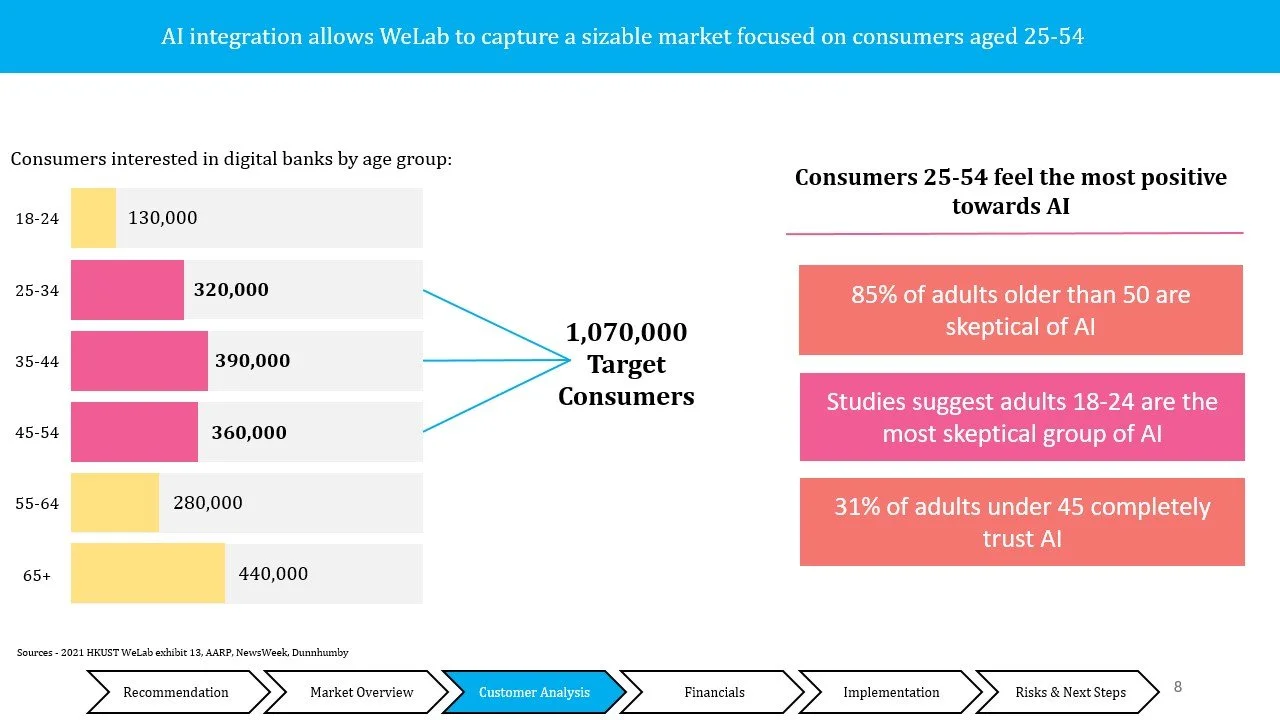 Sized the opportunity in virtual banking (HK$76B market, 1.9M potential customers) and defined a target segment of customers aged 25 to 54 who are most receptive to AI enabled banking.