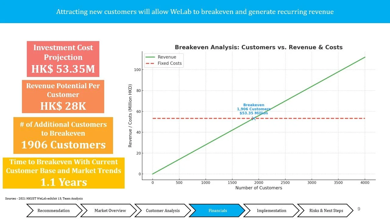 Modeled revenue potential of HK$28K per customer and calculated that WeLab would need roughly 1,906 new customers to breakeven in just over one year.