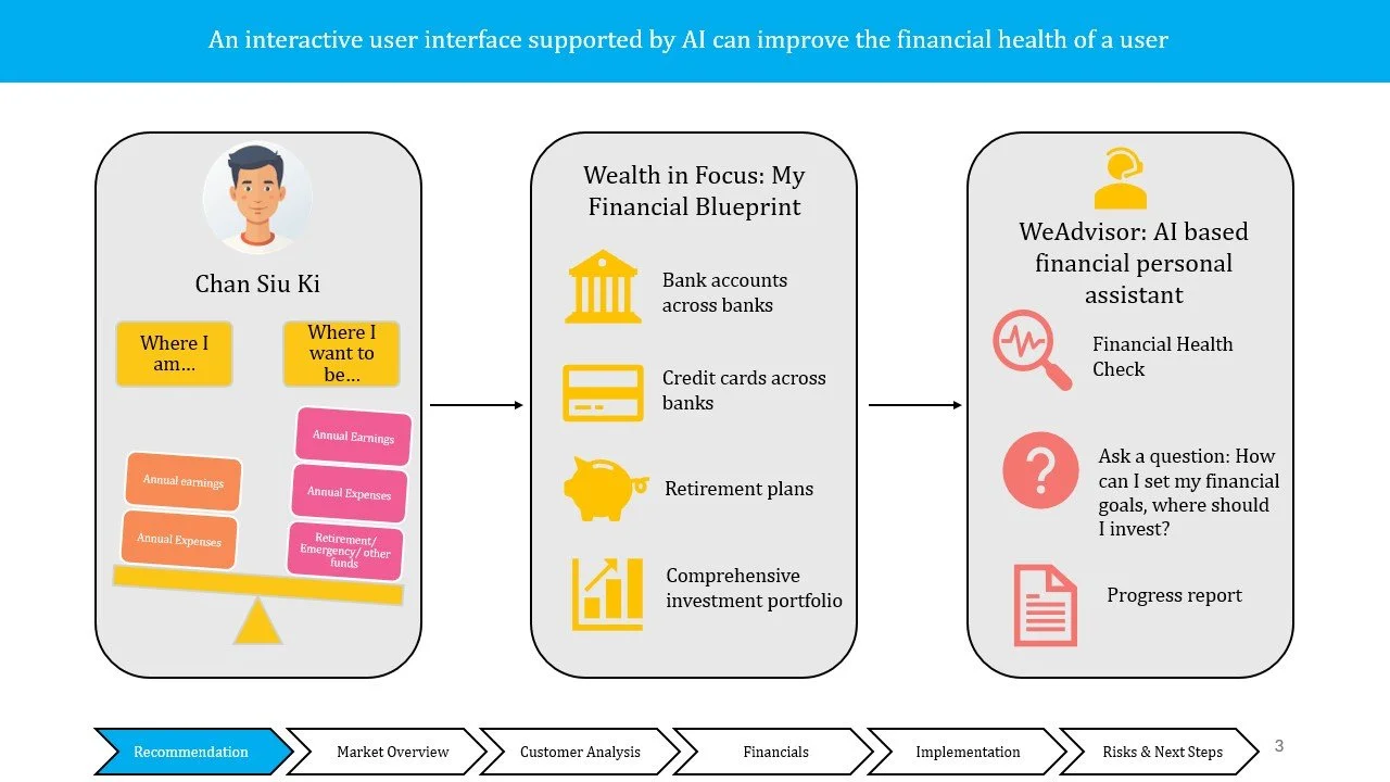 Clearly articulated the recommendation to launch WeAdvisor, an AI based financial personal assistant embedded in WeLab’s app.